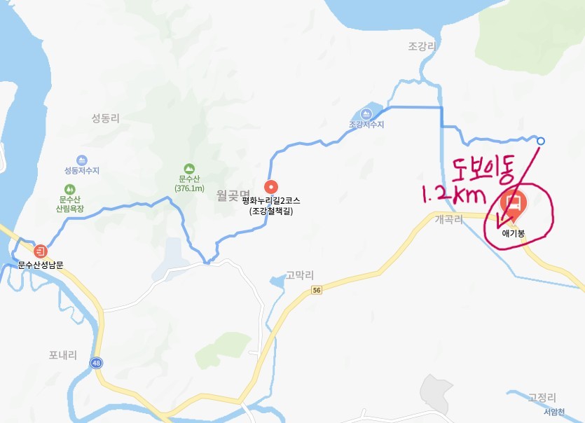 1. 도보이용: 종료지점에서 '애기봉입구' 정류장까지 1.2km (약 17분) 도보로 이동
