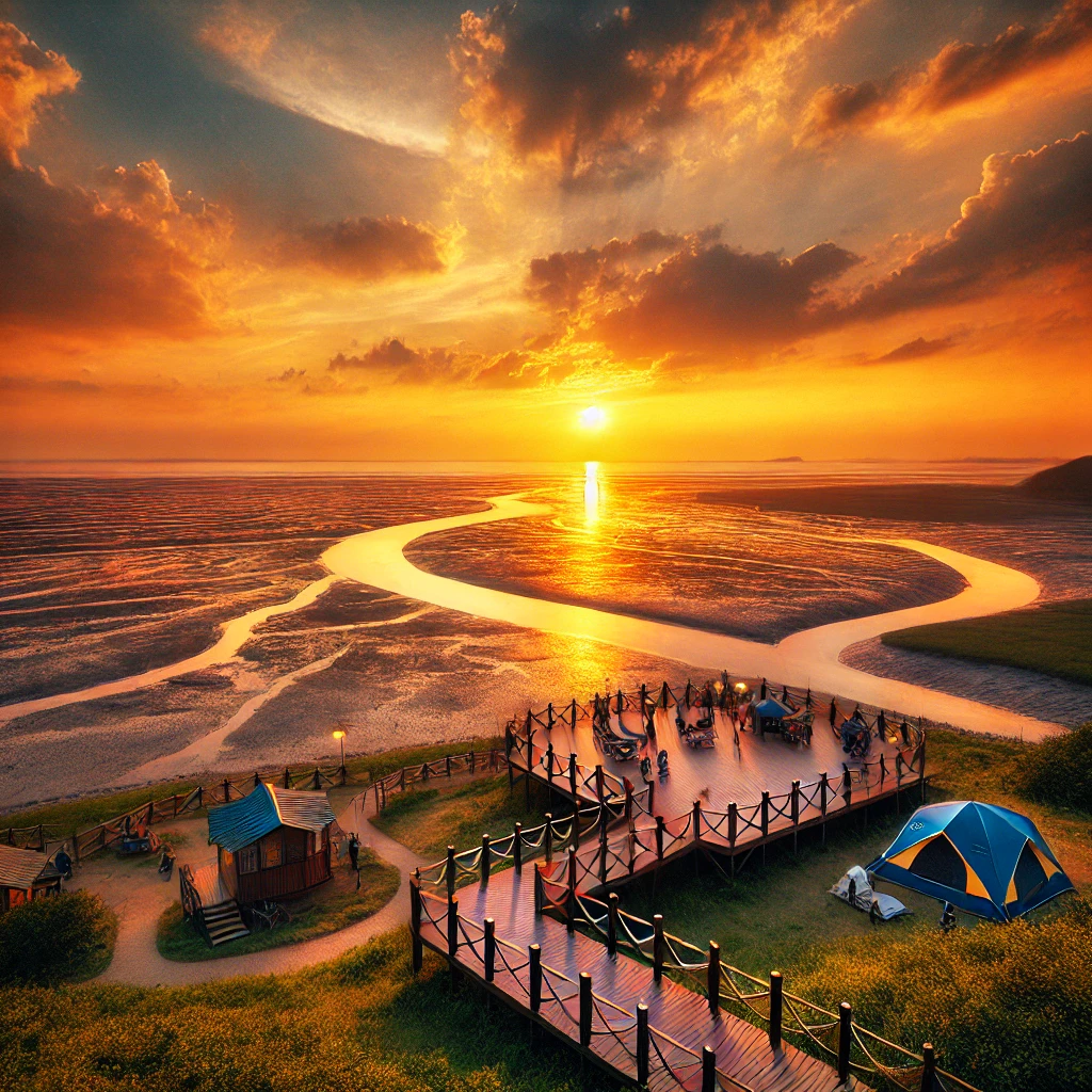 캠핑장에서 서해의 탁 트인 바다와 함께 장관인 노을을 감상할 수 있어, 일상에서 벗어나 자연의 아름다움을 만끽할 수 있습니다.